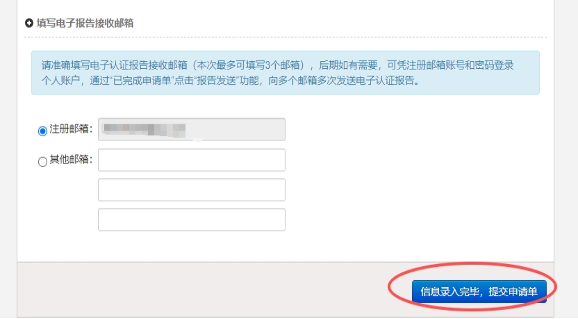 11、申请完成,等待认证报告,认证报告进度会通过所填写的电子邮箱接收。