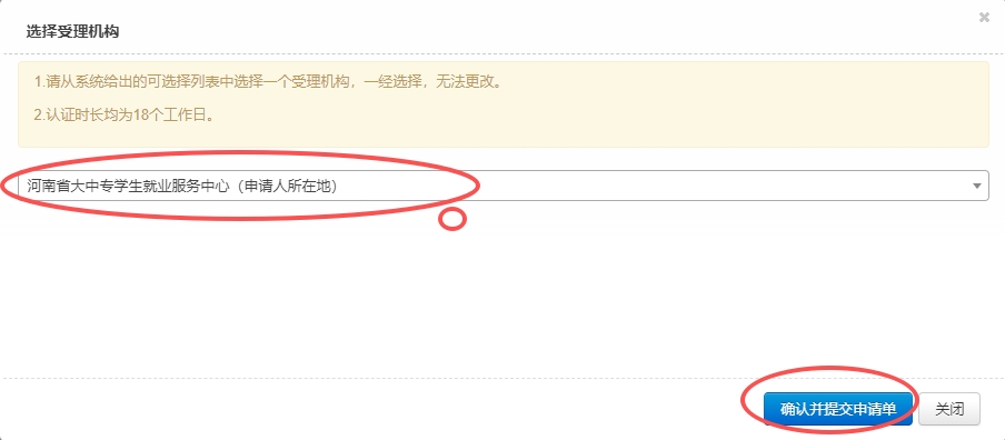 10、选择受理机构,并点击“确认并提交申请单”。