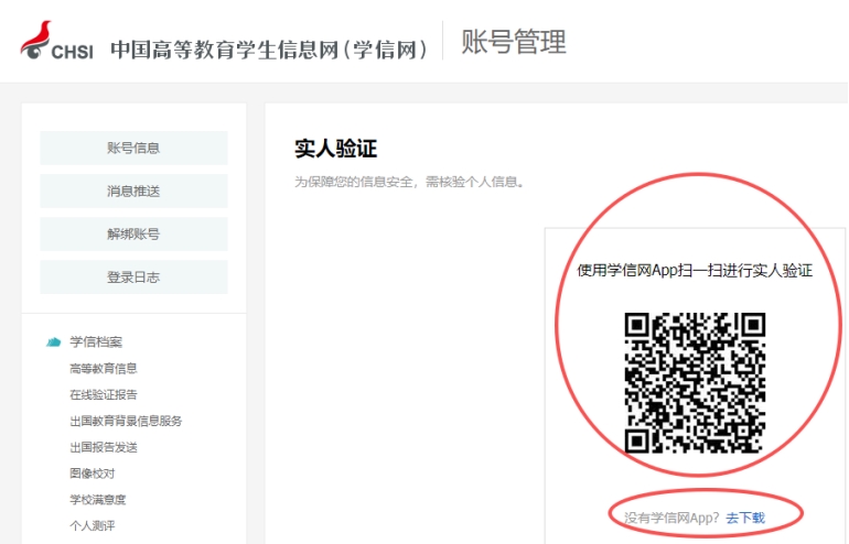 2、打开手机学信网App扫一扫进行实人验证